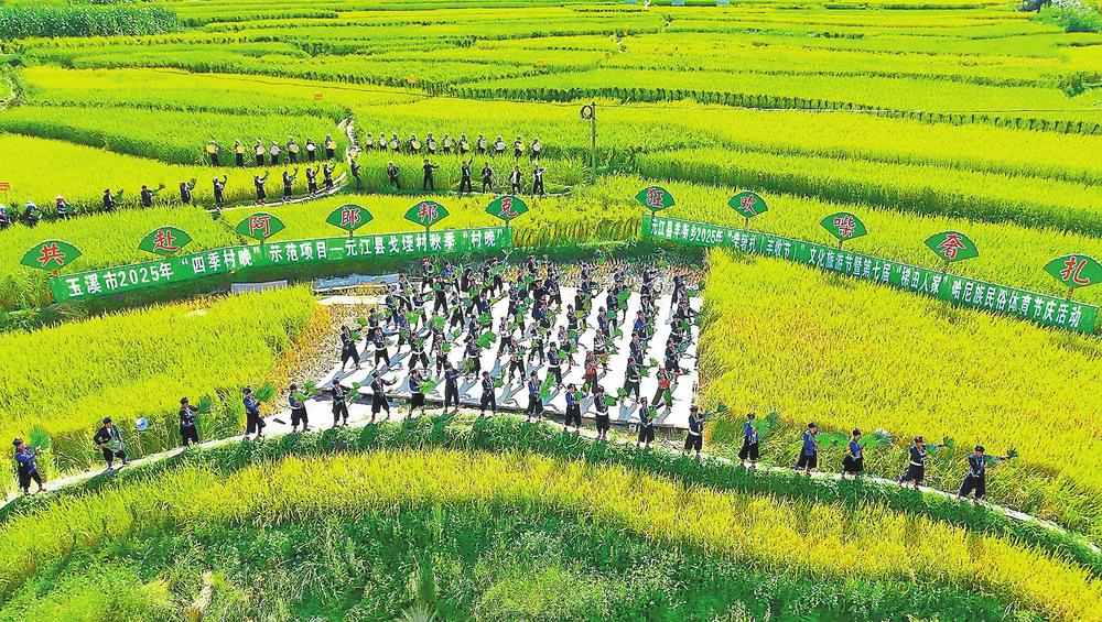 秋意渐浓,稻谷飘香。近日,元江哈尼族彝族傣族自治县的万亩梯田披上“金装”,当地哈尼族群众迎来一年一度庆祝丰收、感恩自然的重要传统节日“喍奢扎”节,梯田之上处处洋溢着丰收的喜悦。