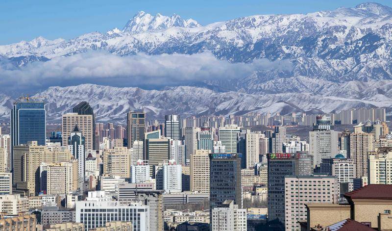 天山脚下的乌鲁木齐市城区一角(2022年3月30日摄)。