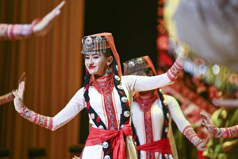 在新疆塔县葱岭演艺中心,青年舞蹈演员阿曼古丽·瓦比克参与音乐剧《拉齐尼·巴依卡》的演出(2025年3月22日摄)。