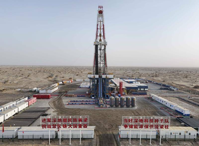 这是2025年2月20日在新疆塔克拉玛干沙漠腹地拍摄的中国石油塔里木油田深地塔科1井。当日,我国首口超万米科探井胜利完钻。