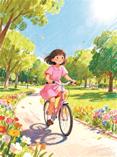 每当写作业写到脑子发晕,我就会推着自行车去公园。沿着公园的小路慢慢骑,微风吹过脸颊,路边的花儿还会飘来淡淡的甜香。有时候我会故意骑快些,感受风掠过身边的速度,那一刻,所有烦恼都像被抛到了脑后,心里只剩下纯粹的快乐。要是骑累了,我就停下来看看树上蹦跳的小鸟、湖边游弋的小鱼,偶尔还会喂喂池塘里的鸭子。不过半小时的时间,浑身就变得轻松不少,再回家写作业,思路也清晰了。