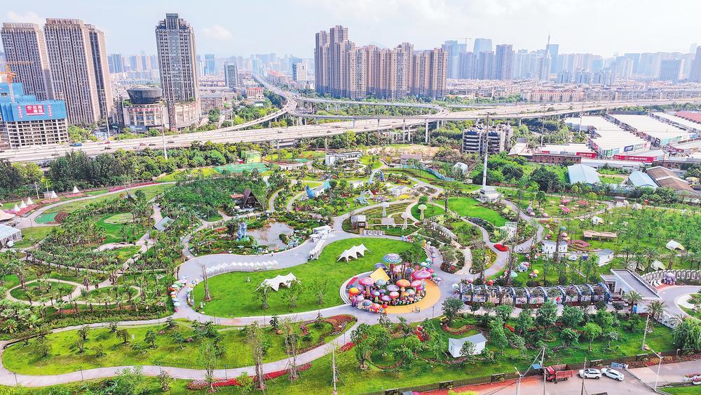 位于昆明市西山区明波路、明河路与杭瑞高速交会处的昆明市城市园林策展体验中心,为春城添绿增彩。陈飞 摄