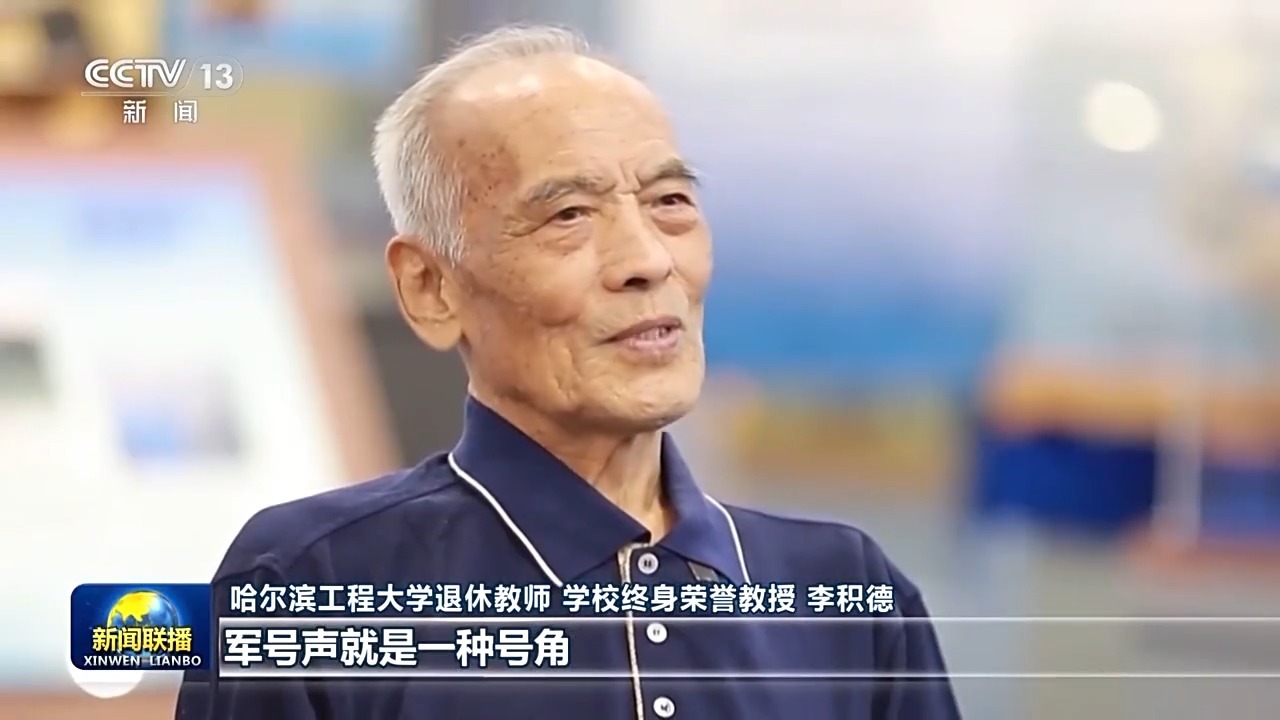 哈尔滨工程大学退休教师 学校终身荣誉教授 李积德:军号声就是一种号角,感到很振奋。