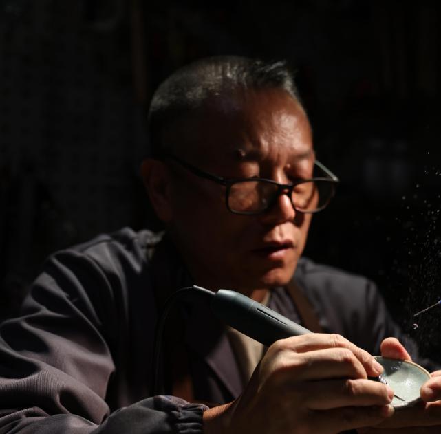 夜幕低垂,昆明市盘龙区金庭小区一间工作室里,58岁的付忠华正俯身操作台前,他手持金刚钻,对一件破裂的瓷杯盖进行细腻的“缝补”。小锤轻敲间,錾刻花纹的银片与铜丝逐渐让残缺的杯盖重获新生,化作一件承载新故事的艺术品。