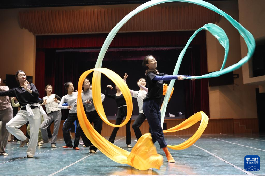 托掌、端腿、出胯、勾脚,一个个飞天舞姿翩然浮现。反弹琵琶、长绸轻舞,“动中有静,静中有动”,尽显东方美学优雅。在甘肃省歌舞剧院,演员们正在排练新版《丝路花雨》。