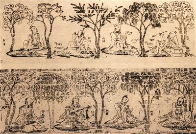 《竹林七贤与荣启期》砖画拓片(阮咸部分)