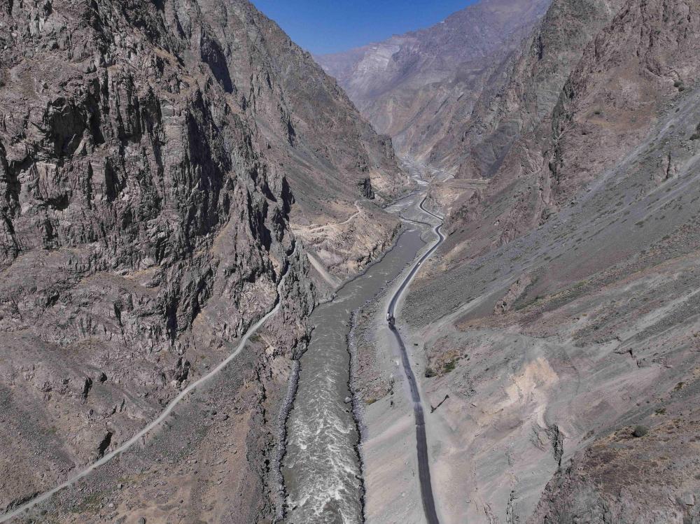 这是在塔吉克斯坦卡拉依洪姆村附近拍摄的中塔公路二期路段(无人机照片)。