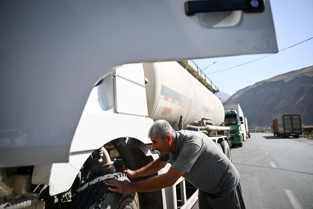 在塔吉克斯坦卡拉依洪姆村附近,司机图拉洪检查车辆。他介绍道:“这条路我跑了40年!去杜尚别以前要花很长时间,大约三四天,现在一天半就到了。”