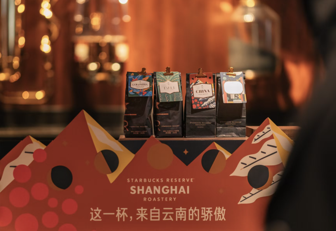 今年十月,马孝金带着自己在云南孟连种出的咖啡豆,来到星巴克臻选上海烘焙工坊,同更多咖啡从业者交流学习。作为被咖啡改变命运的无数咖农之一,他或许不知道,几天前这里刚发生过热闹的一幕:来自韩国、印尼、美国的咖啡爱好者,在门店挑选咖啡豆卡上写着“China”的咖啡豆做伴手礼,而他的云南孟连咖啡豆,和余祖贵种出的黄波旁咖啡豆,被抢购一空。