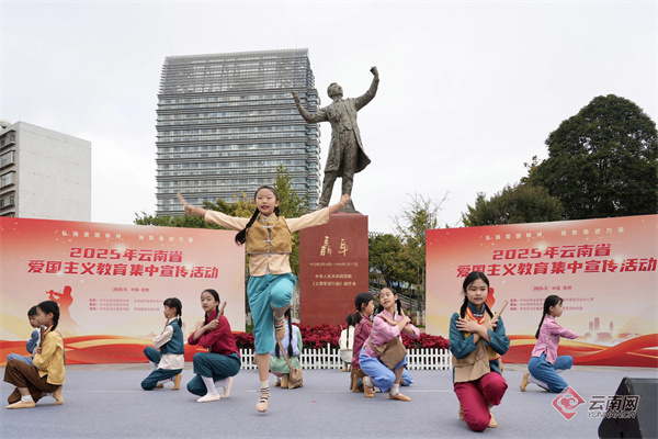 昆明市聚焦讲好聂耳和国歌、西南联大教育救国、闻一多舍生取义、中央红军巧渡金沙江的故事等为抓手,全面加强和改进爱国主义教育工作。一方面大力推进革命文物保护利用,通过实施“闻一多、朱自清旧居”VR数字还原、打造“翠湖博物馆群落”等项目为爱国主义教育提供坚实支撑;另一方面着力加强品牌打造,成功举办聂耳音乐周,推出话剧《我的闻先生》、庭院剧《联大往事》等文艺精品,并依托聂耳母校长春小学建立“小聂耳剧社”“小聂耳合唱团”等,让爱国主义教育在青少年心中落地生根。其中,今年9月底开放的国歌五华广场聚焦“聂耳和国歌”主题,通过动态设计多角度展现聂耳精神风貌,为新时代赓续红色血脉、弘扬爱国精神提供鲜明载体与生动场景。