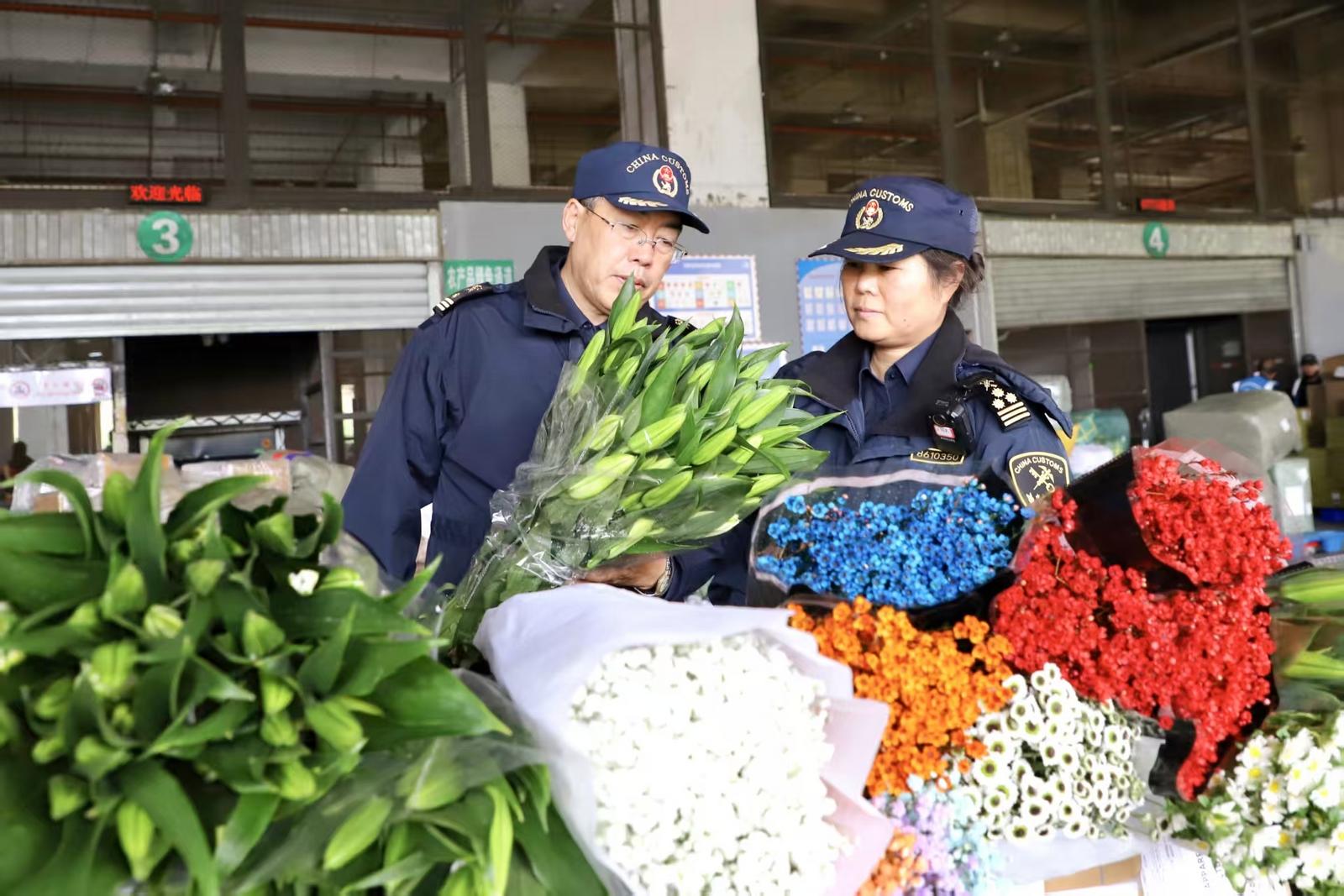“鲜切花易腐易损、保鲜期短,我们结合企业出口计划,针对促销季出口量多、时效急的情况,开通鲜切花出口‘绿色通道’,优先派单查检和快速验放,为企业提供全时段、全方位、全流程‘一站式’通关服务,最大化压缩鲜切花通关时间。11月以来,我们平均每天监管验放出口鲜切花约15万枝,主要运往东南亚等海外市场。”昆明长水机场海关综合业务科科长郑朝阳介绍。