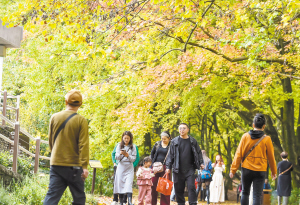图为枫叶逐渐进入最佳观赏期,昆明植物园游人如织。 记者王俊星摄