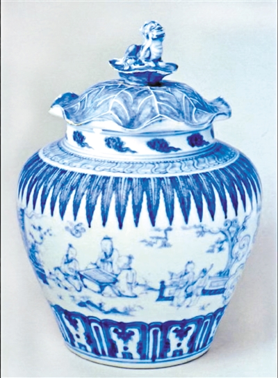 耿宝昌先生经手鉴定的明代成化青花高士图盖罐