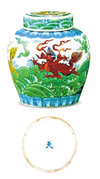 成化斗彩海水异兽图“天”字罐 (原定名 后经耿宝昌先生正确断代)
