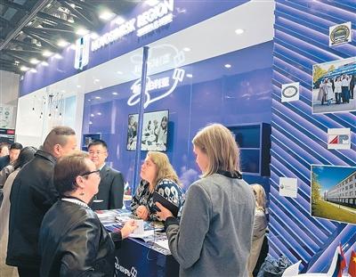 俄罗斯展区新西伯利亚国立大学展台人来人往。杨哲铭摄