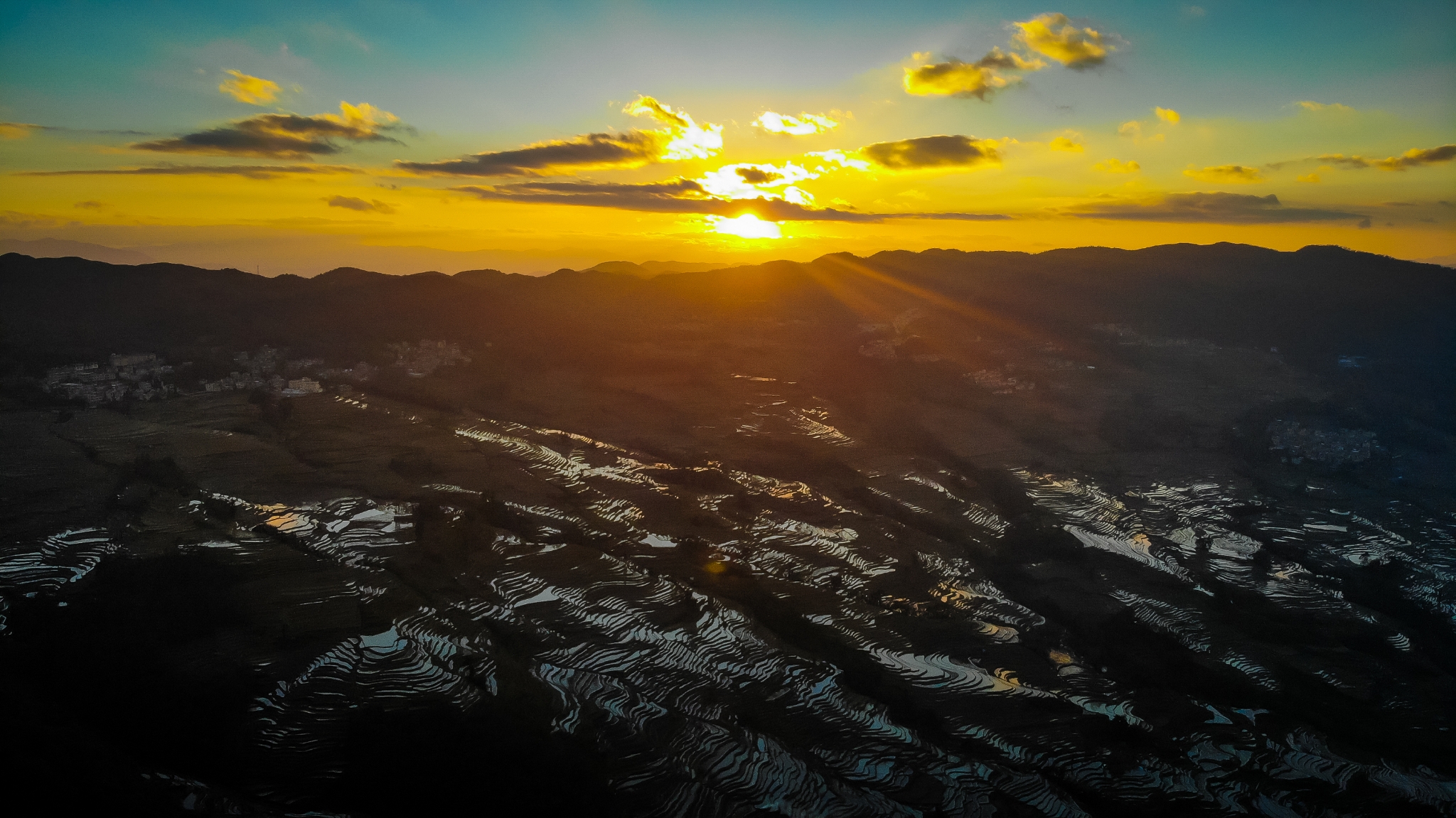 眼下农户们趁农闲完成翻耕灌水,让梯田维持在景色最优的蓄水状态。这片承载着千年农耕文明的土地,以“森林、村寨、梯田、水系”四素同构的生态系统,勾勒出人与自然和谐共生的画卷,成为冬季云南旅游的热门地标。