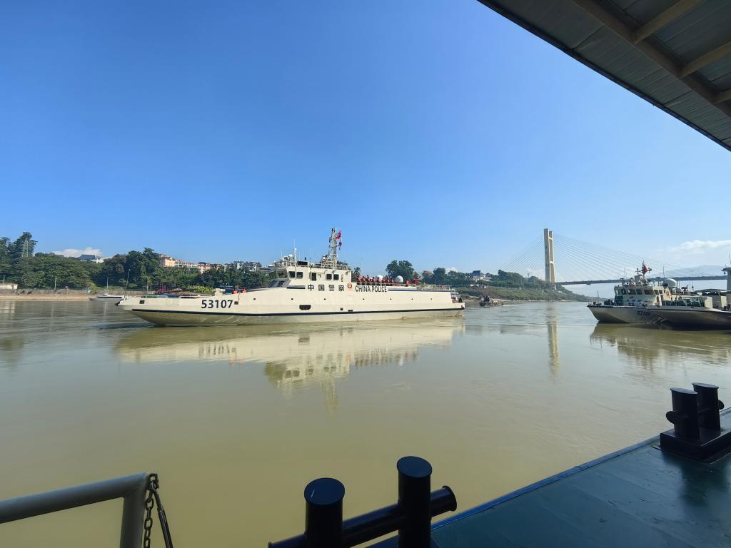 12月5日,中方53107艇正在缓缓靠泊景哈警务码头。(云南省公安厅水上巡逻总队供图)联合驻训行动期间,中老缅三方聚焦联合执法实战需求,先后组织开展测深、撇缆、灭火、损管堵漏等专业科目联合训练和航道知识、装备保养、查缉执法等业务交流23场次,有效提升各方队员专业能力和联合执法水平;在湄公河重点敏感水域开展水陆联合查缉行动,累计检查各国往来船只19艘次,人员175人,货物3400余吨,有力震慑湄公河流域各类违法犯罪活动。
