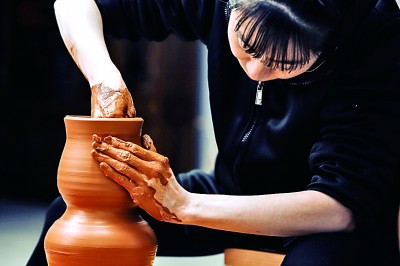 孙莉在制作建盏。