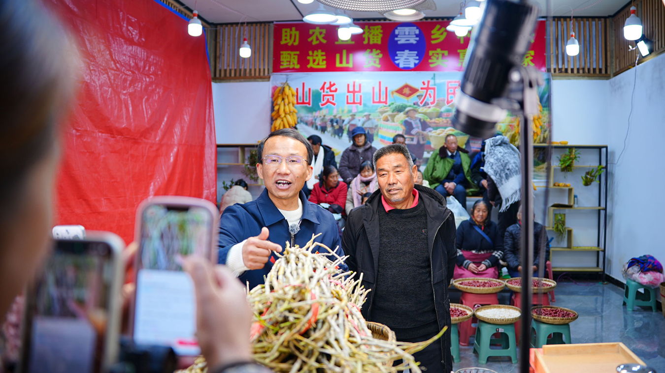 “小杨,来帮我卖点儿石斛,自己种的,不打药不施化肥……”仲冬深夜,在保山市龙陵县平达乡平安村民安园移民搬迁点,热闹的助农直播像往常一样正在进行。10多位村民带着自家种的石斛、白芸豆、核桃等特产轮番上前,主播杨根余对着镜头展示起了这场直播的货品。