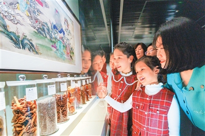 11月23日,新疆乌鲁木齐市天山区新华南路街道西河坝前街社区组织居民和孩子来到新疆博物馆参观“智慧之光——中医药文化展”,全面了解中医药文化发展脉络。