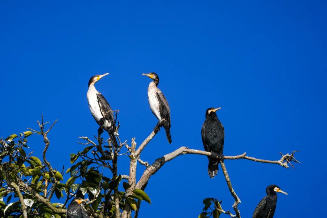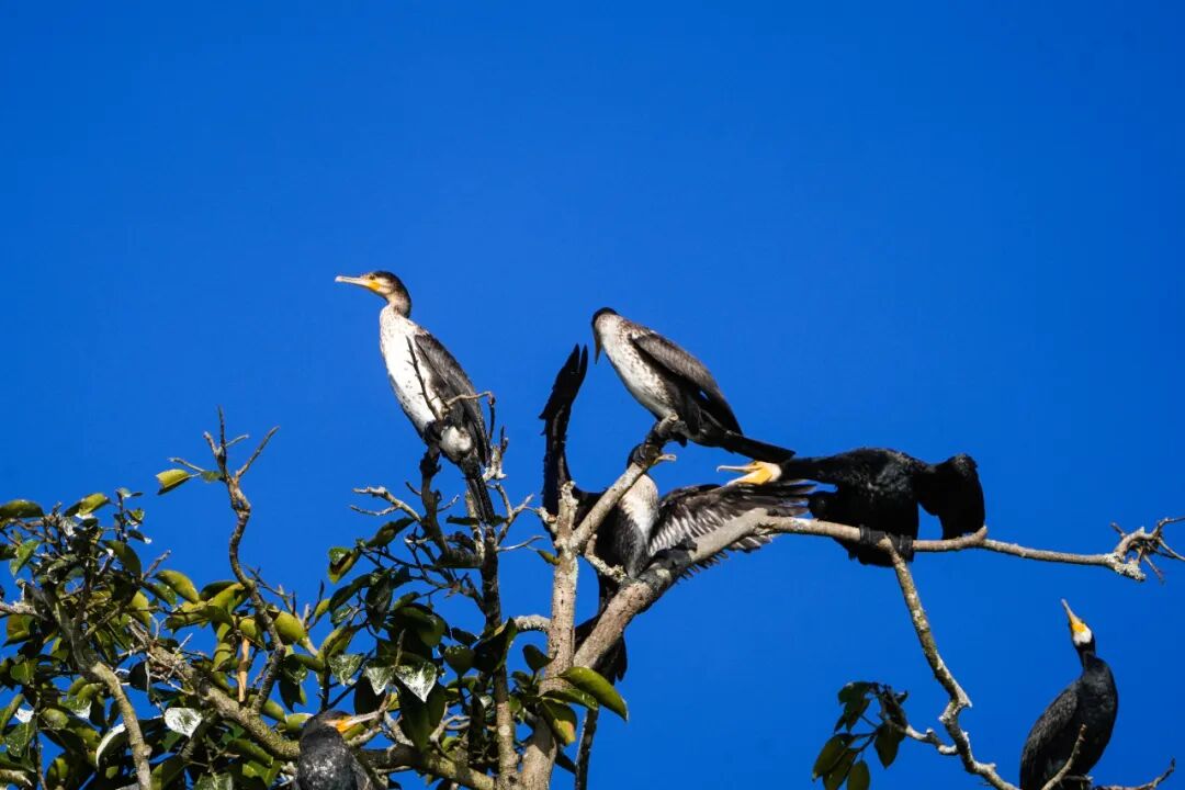 碧波映晴空,候鸟舞翩跹