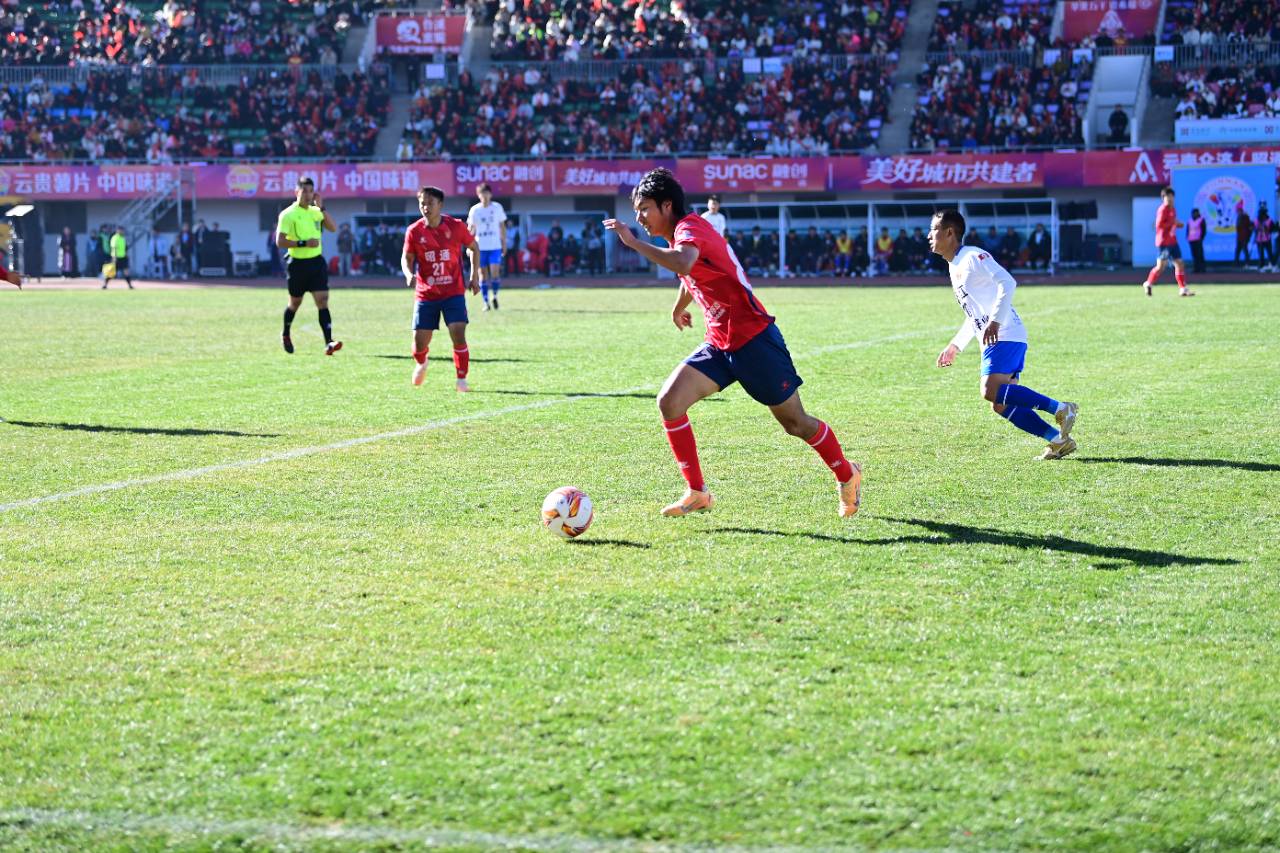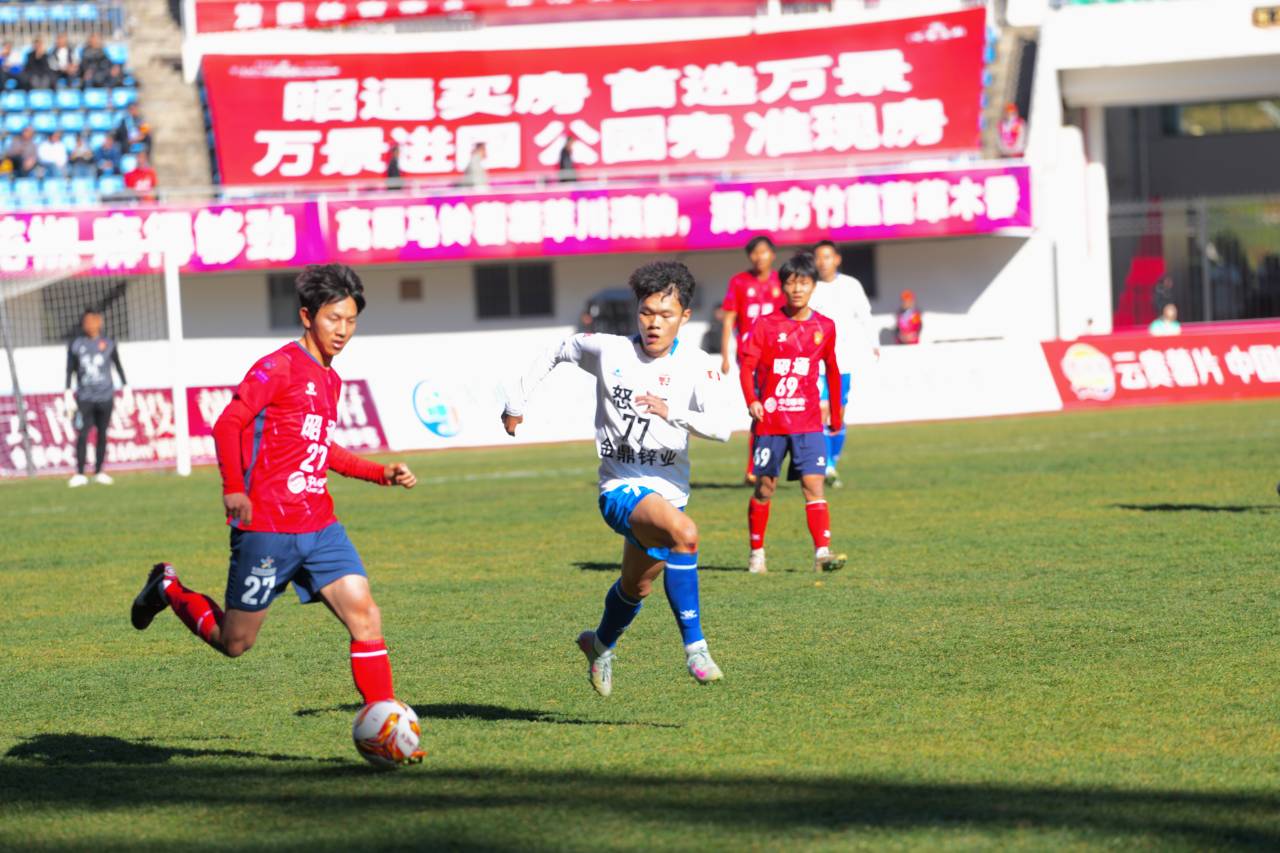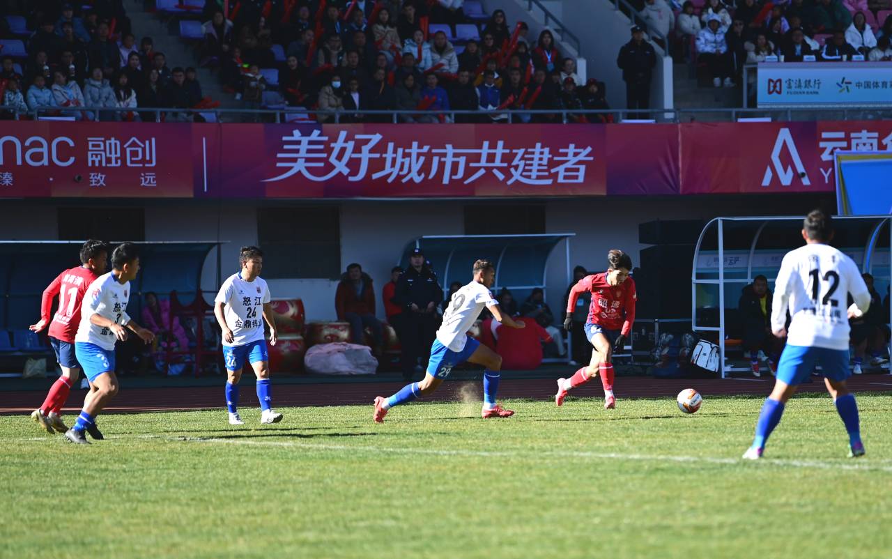 主场作战的昭通队球员持续向对方球门发起猛烈冲击,尽显昂扬斗志与默契无间的团队协作。现场球迷挥舞旗帜,呐喊声此起彼伏,化作绿茵场上熊熊燃烧的助威之火,为球队注入了无尽动力。