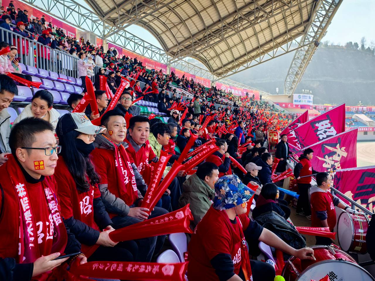 本场比赛吸引了近万名观众到场观赛。除了精彩的赛前表演,场外还设置了昭通农特产品展示区、非遗文化体验区等特色互动区域。球迷们在观赛之余既能品尝特色美食,又能感受本土文化魅力。(记者:莫娟 马礼琼 聂孝美 闵光景 刘兴刚 范云 韩兴国 文/图)