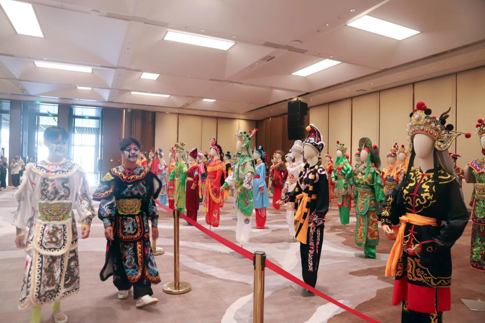 2025年10月3日在汕头国际会展中心英歌舞非遗展示区拍摄的英歌舞服饰。