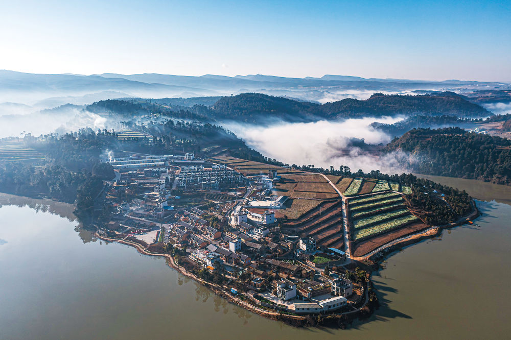 清晨,“头枕青山,三面环水”的马龙区王家庄街道格里社区黄坝村萦绕着一层薄雾,村旁车马碧水库波光粼粼,周围山峰郁郁葱葱,进村如同闯入静谧的山水画卷。