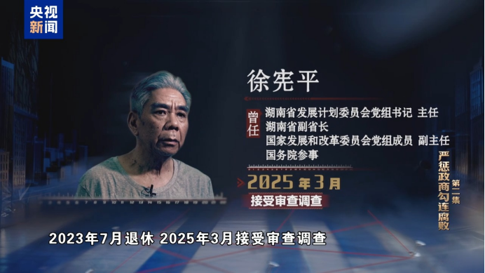 徐宪平,曾任湖南省发展计划委员会党组书记、主任,湖南省副省长,国家发展和改革委员会党组成员、副主任等职务,2015年退居“二线”,后任国务院参事,2023年7月退休,2025年3月接受审查调查。在“退而不休”、利用“余威”谋取“余利”问题上,徐宪平表现得尤为典型。