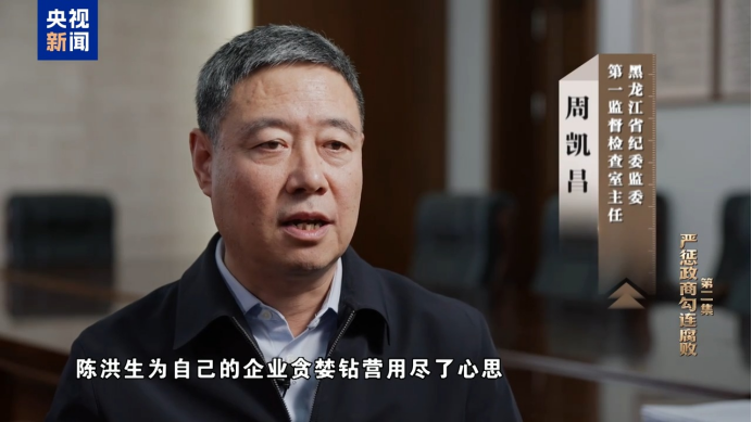 黑龙江省纪委监委工作人员 王喆:陈洪生案件最大的一个特点就是他本人亦官亦商。他是经过各种方式精心去考量、去筹划,用他自己手中的权力攫取人民的利益、攫取国家财政资源。