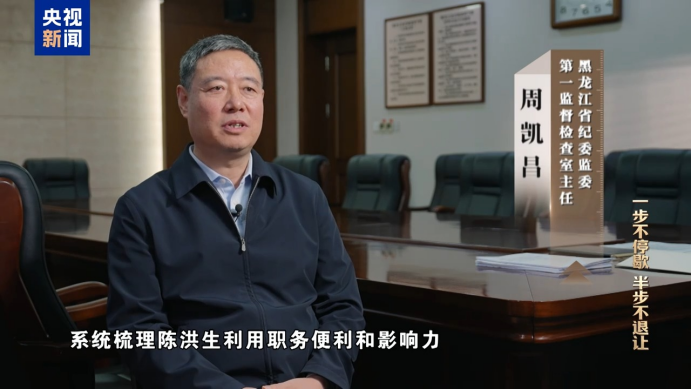 黑龙江省纪委监委第一监督检查室主任 周凯昌:我们注重发挥办案引正纠偏的效应,系统梳理陈洪生利用职务便利和影响力,大肆侵占公共资源、国家资产等严重腐败问题,形成了专项剖析报告,提出了处置意见还有整改建议,为精准指导黑河市全面净化修复政治生态提供了有力的支撑。