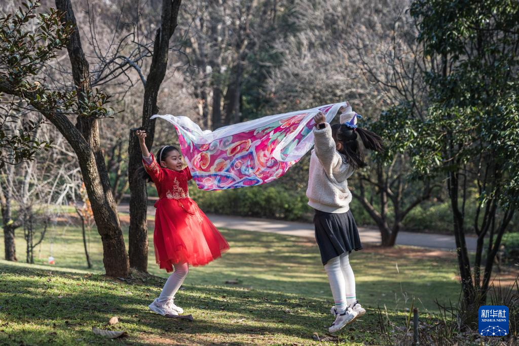 1月10日,小朋友在昆明植物园内玩耍。新华社记者 王冠森 摄