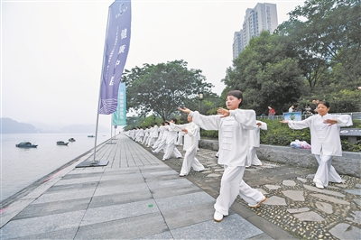 中老年人在打太极拳。 新华社记者 徐昱摄