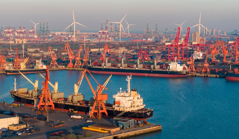 A drone photo taken on Jan. 2, 2026 shows a view of a terminal of a subsidiary of Tianjin Port Holdings Co., Ltd. at Tianjin Port in north China's Tianjin. (Xinhua/Zhao Zishuo)
