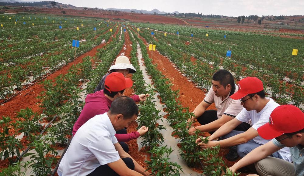 砚山县农科服务团在砚山县平远镇洪福村辣椒示范基地开展调查。