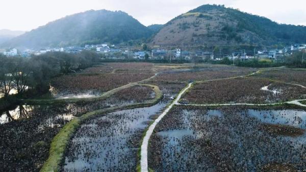 夕阳西下,冬日的野鸭湖里枯荷静立,安静地陪伴着村庄、田舍、虾塘,远远望去,犹如一幅绝美的油画。走近野鸭湖,只见湿地精灵白鹭们三五成群在休息,偶尔会有一行白鹭悠然划过。