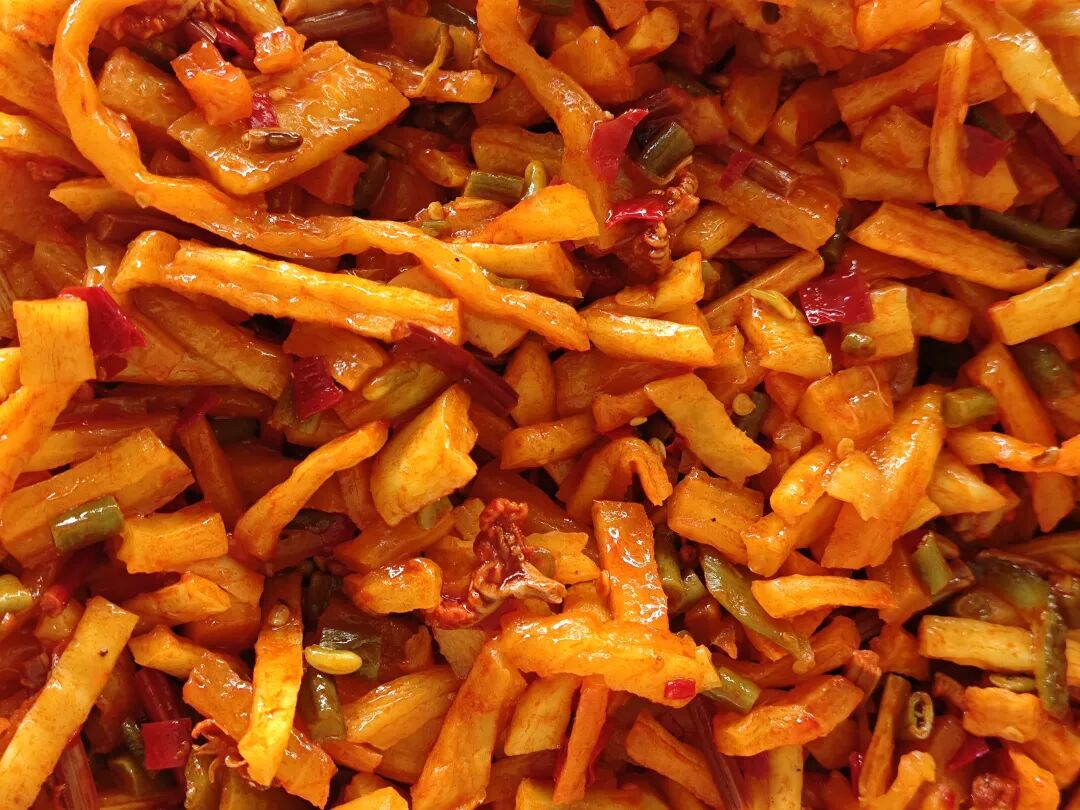 为进一步延伸产业链、提升产品附加值,涌宝镇积极引导农户发展萝卜深加工产业,推动农产品向多元化方向转型升级。当地农户结合实际,开发出萝卜丝、萝卜条、腌制萝卜等系列深加工产品,既有效解决了鲜萝卜储存期短、运输成本高的问题,又通过工艺优化实现了产品价值提升。这些深加工产品保留了涌宝萝卜的天然风味,凭借原生态、无添加的品质优势深受市场青睐,与鲜品销售形成有效互补,进一步拓宽了农产品销售渠道和农户增收途径。