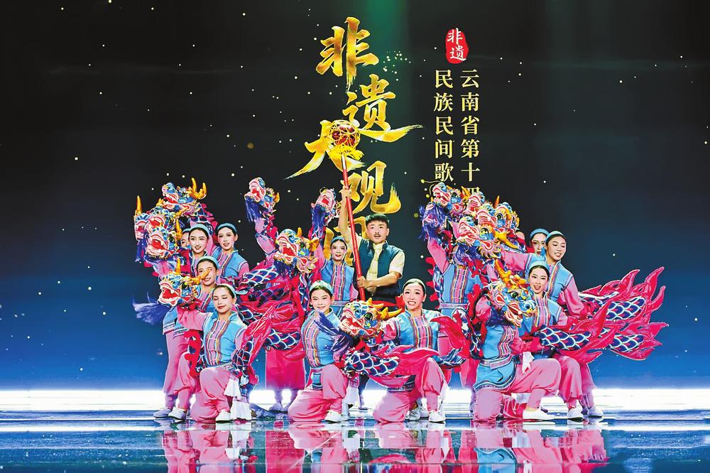 本次参演的1200余名演职人员来自全省16个州(市),构成了老中青传承梯队;4场专业舞台展演在云南广播电视台演播大厅推出,10场惠民演出同步在城市社区开展,并登陆云南卫视黄金档进行展播。展演内容立足传统根基探索现代表达,力求非遗传承与时代审美共振。传统类节目深挖文化底蕴,严守非遗技艺规范,让观众直观感受传统文化的厚重本真;创新类节目传承文化内核,又贴合当代受众审美,让非遗焕发时代光彩。