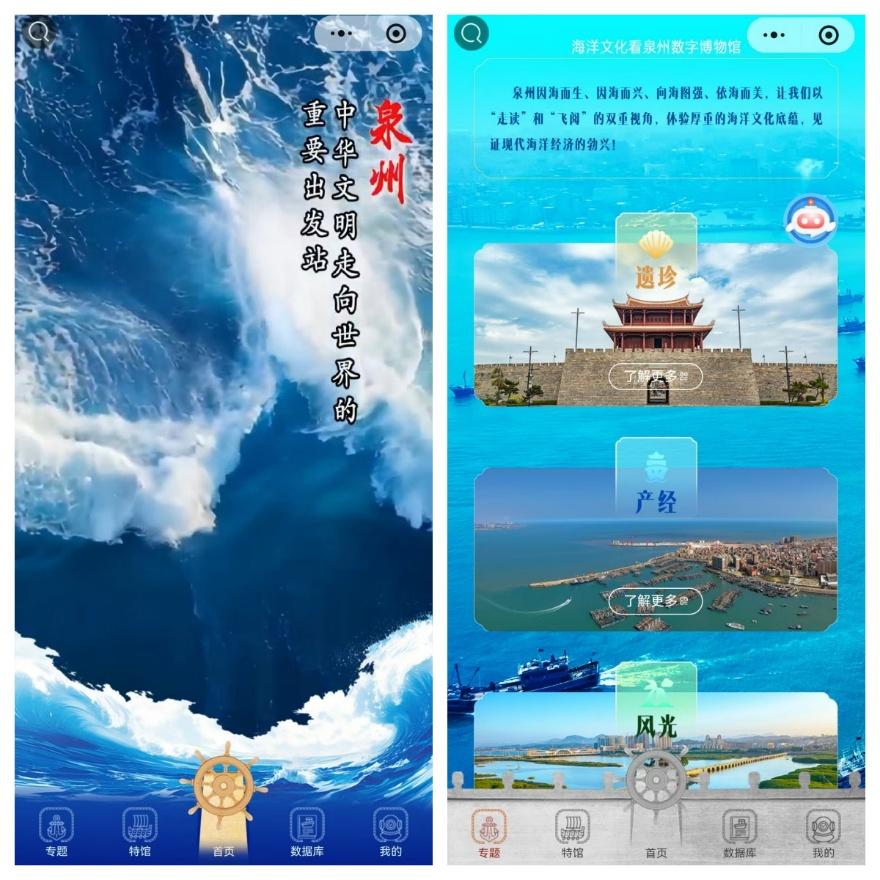海洋文化看泉州数字博物馆设有“专题”“特馆”“数据库”和AI助手等区域和功能,读文、看图、观视频、查信息,指尖一点轻松阅览。
