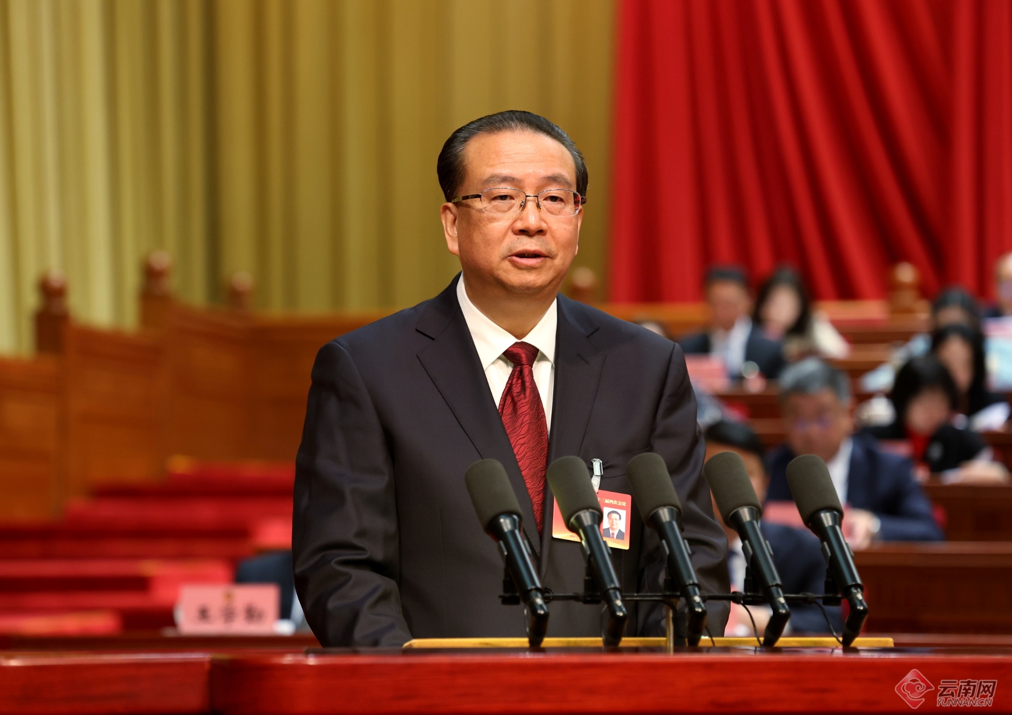刘晓凯代表政协云南省第十三届委员会常务委员会向大会报告工作。记者 周灿 顾彬 胡妤雅 高吴双 摄