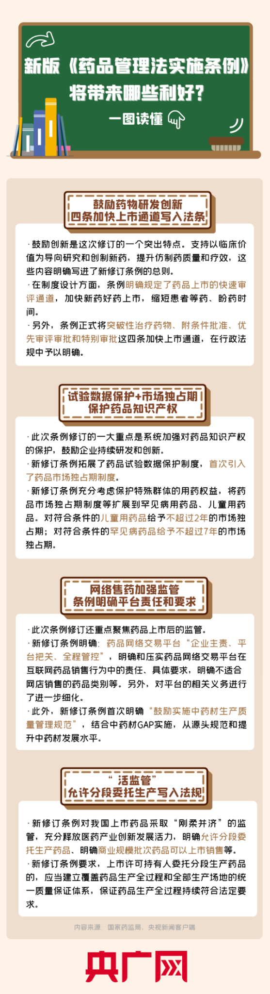 1月27日,新修订的《中华人民共和国药品管理法实施条例》(以下简称《条例》)正式发布,并将于2026年5月15日起施行。条例重点修订了哪些内容?又将给公众带来哪些利好?央广网带您一图读懂。(央广网 记者郭彦伟 实习记者孟媚)