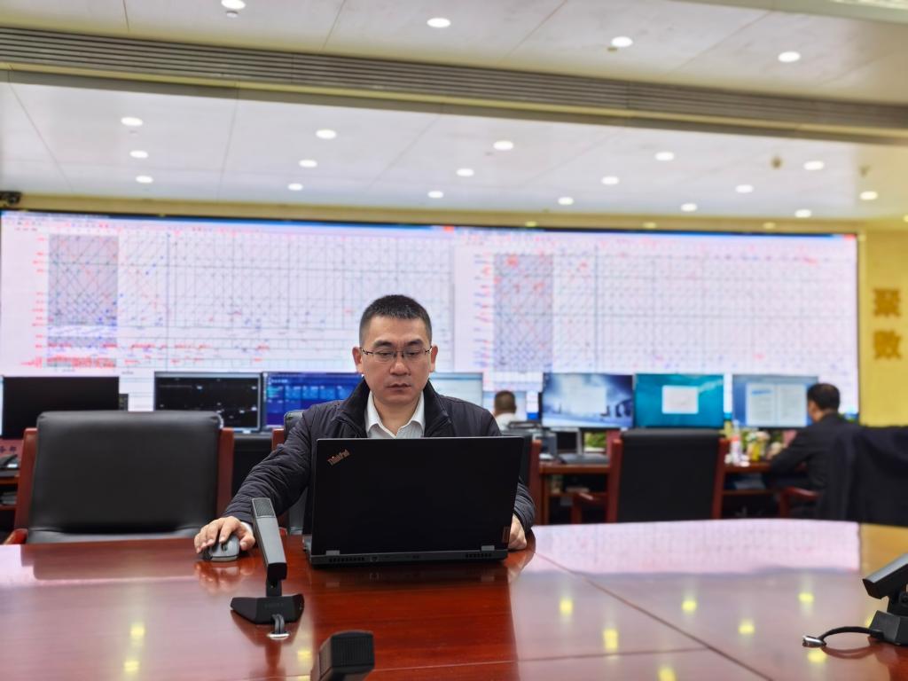 中国铁路北京局集团有限公司运输部工程师张博正在工作。新华社发