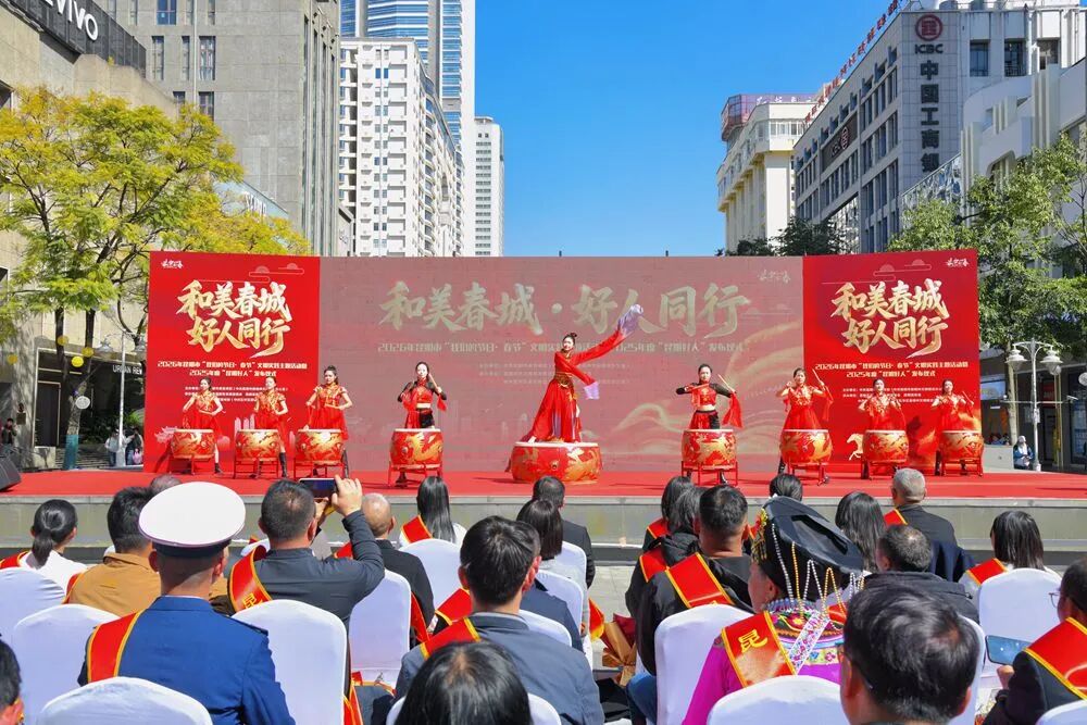 活动正式启幕,一场气势磅礴的鼓舞《盛世腾飞》奏响了新春的激昂序曲,也展现了春城人民奋发向上的精神风貌。中共昆明市委宣传部(中共昆明市委文明办)相关领导出席活动并致辞,向荣获表彰的“昆明好人”表示热烈祝贺与崇高敬意,同时号召全市人民以好人为榜样,见贤思齐,以德行润泽春城,让好人精神持续滋养城市文明,汇聚起建设“六个春城”的强大精神动力。
