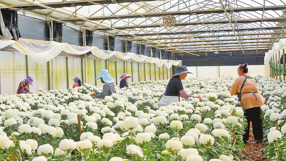 目前,数字花卉全产业链平台已覆盖园区内21家企业及284户种植户,通过整合第三方服务资源,为农户提供种苗、种植方案、市场对接等全链条支持。“十四五”期间,园区实现综合产值203亿元,其中花卉综合产值116.5亿元,带动周边1.9万户农户种植花卉7.6万亩,园区核心区的农村居民人均可支配收入比全市平均水平高17%,联农带农成效显著。