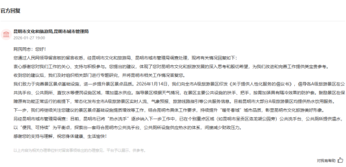 接下来,昆明文旅、城管等部门将持续跟进市民建议,不断完善景区及城市公共基础设施建设,把暖心服务落到实处,以精细化服务提升“暖冬春城”城市品质。