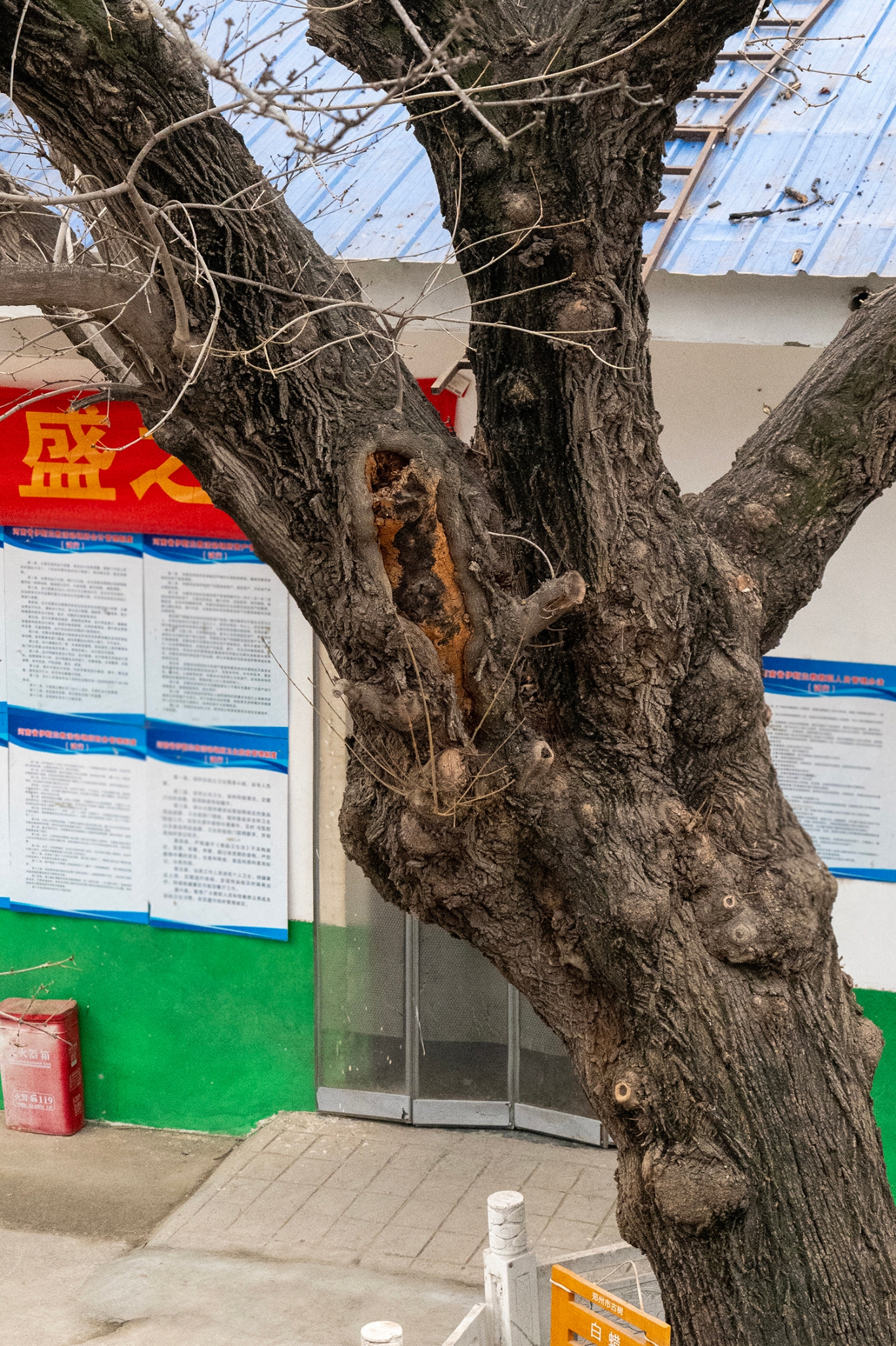 “这些都是近二十来年时间新长出来的”,站在树下的白伟,见我们也发现了这些新枝,高兴地说,“夏天的时候这棵树可茂盛了,树荫能盖住这大半个院子。”