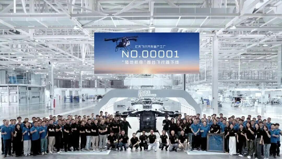 汇天飞行汽车量产工厂试产并顺利下线首台“陆地航母”飞行器。