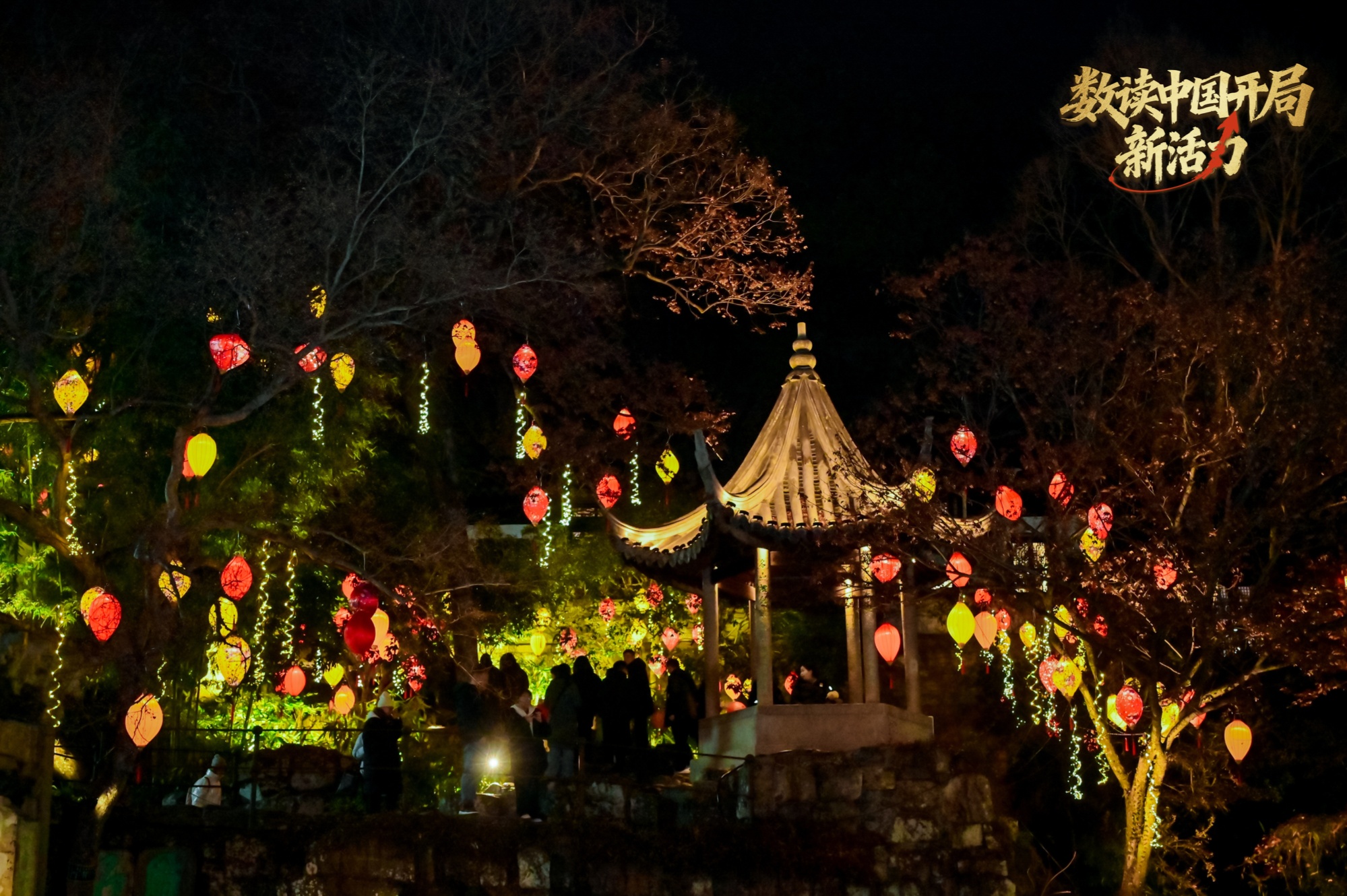 同样的“入景”叙事,也在苏州虎丘塔下铺展。亭台楼阁被灯火点亮,曲桥水面倒映斑斓光影,呈现出“火树银花不夜天”的盛景。灯组将历史典故化作可视可触的夜游长卷,让人恍如穿越时空,在流动的节庆景观中感受江南夜的浪漫与欢腾。