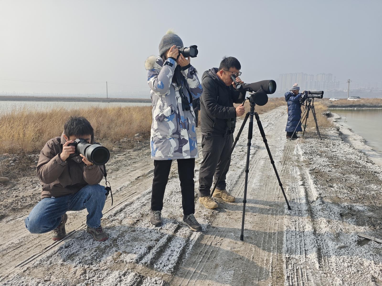 “哎呀,别光瞅我,说话又不影响你看相机取景器。火烈鸟精彩姿态都是一眨眼。”经验丰富的老徐不想让“鸟友”们在运城留下任何遗憾。